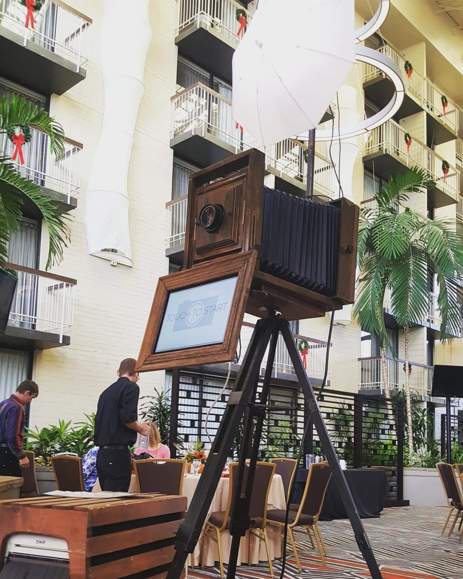 This is a professional unique to us Vintage Digital Camera, built to look like the old fashioned Bellows Camera of yester year, but its able to produce instant (within seconds) high quality dry prints, it has a touch screen placed below the camera allowing the operator to start the process, view the pictures taken and then if you wish retake or print your photos, it runs via a high powered computer program and uses a digital Photographic Dye Sublimation printer. if you want the more traditional ( Rustic )look for your event this is for you, but with ease of use and fully manned throughout your event,